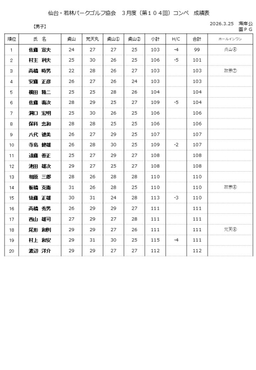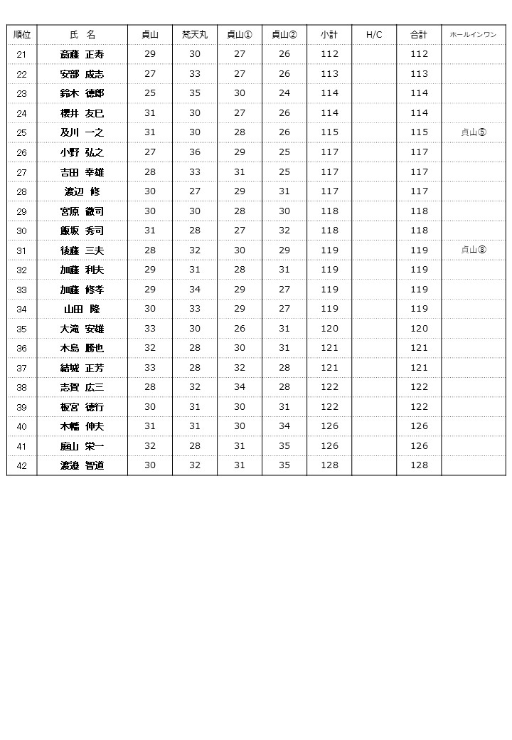 | 第4位 | 渡辺 修 | 99 | ‐ | 99 |