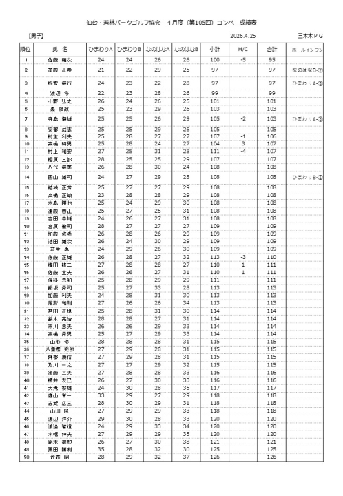 | 第3位 | 板宮徳行 | 97 | ‐ | 97 |