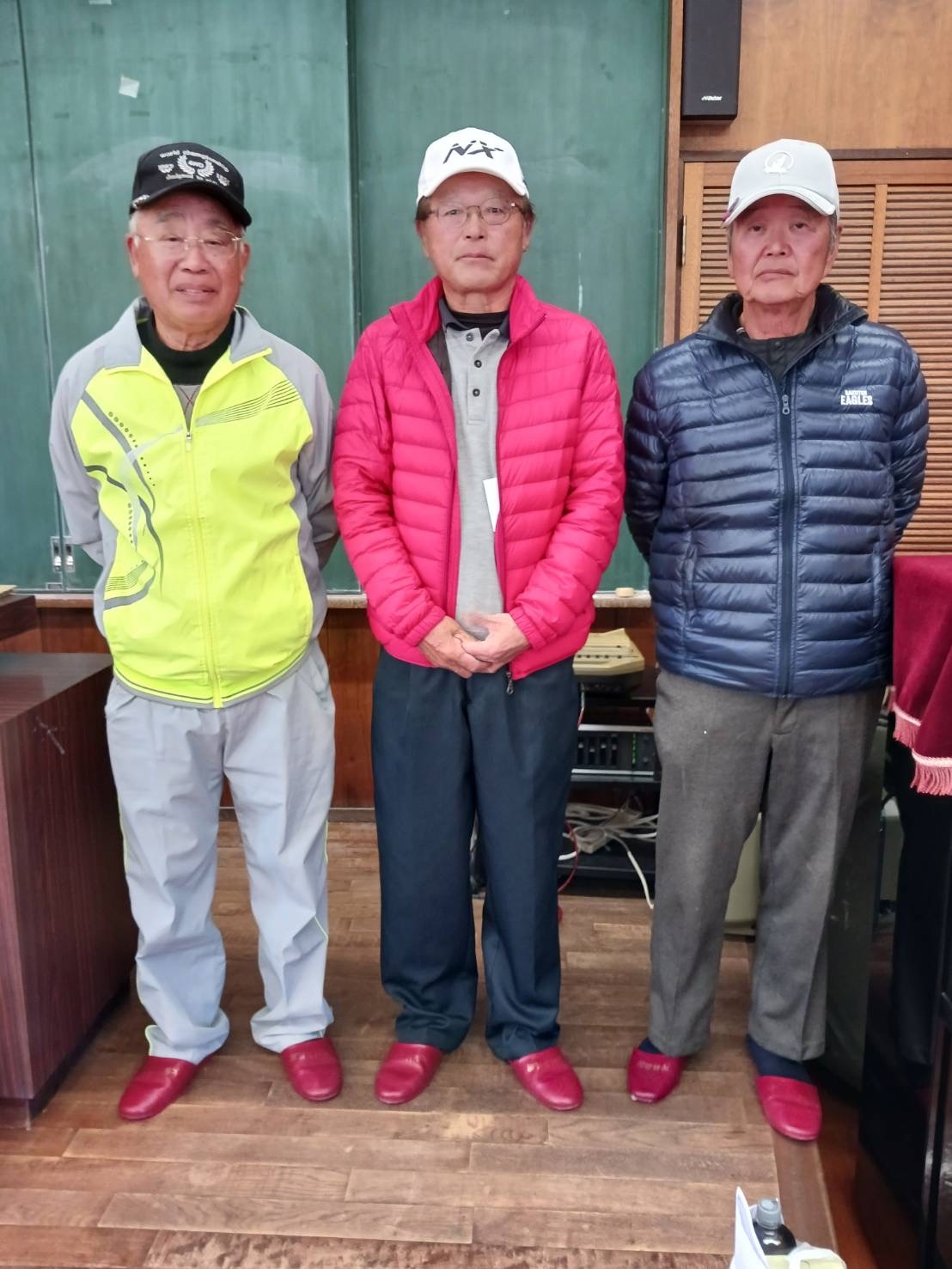 左から準優勝吉田敏則、優勝池田幸男さん、第3位村上春夫さん